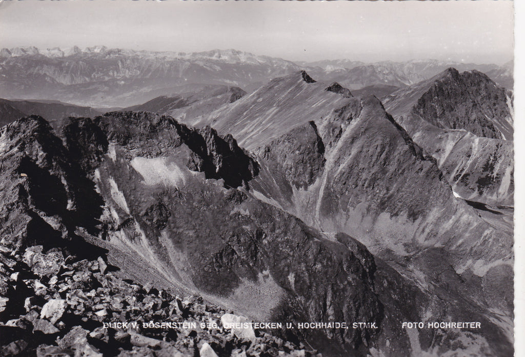 AK Blick vom Bösenstein gegen Greistecken und Hochhaide. Gelaufen 1965. Großformat. Verlag: Hochreiter. Zustand: gut, linkes oberes Eck angeknickt.