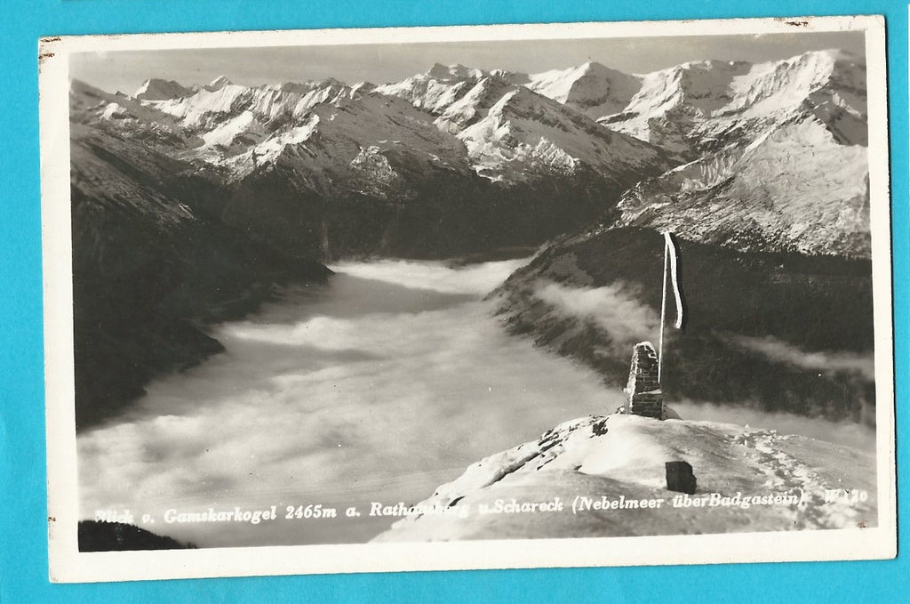 AK Blick vom Gamskarkogel auf Rathausberg u. Schareck (Nebelmeer über Badgastein) Ungelaufen. Kleinformat. Verlag: Wolfsbauer. Nummeriert: W 120. Zustand: linkes oberes Eck geknickt, leicht fleckig.