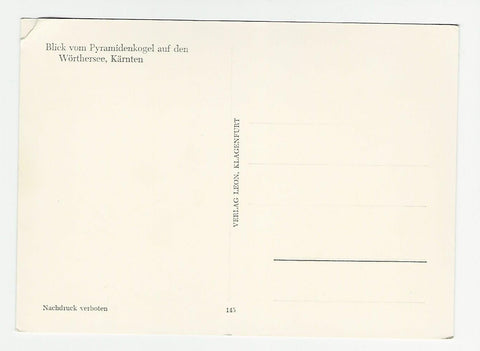 AK Blick vom Pyramidenkogel auf den Wörthersee. Ungelaufen. Großformat. Verlag: Leon. Nummeriert: 145. Zustand: gut, rechtes oberes Eck geknickt.