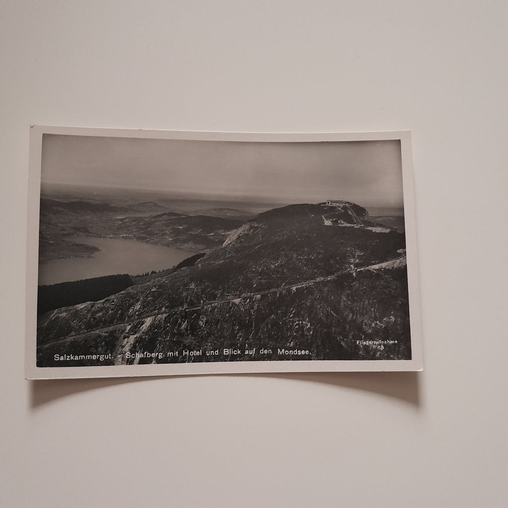 AK Schafberg mit Hotel und Blick auf den Mondsee. Fliegeraufnahme. Ungelaufen. Kleinformat. Nummeriert: 68. Zustand: gut.
