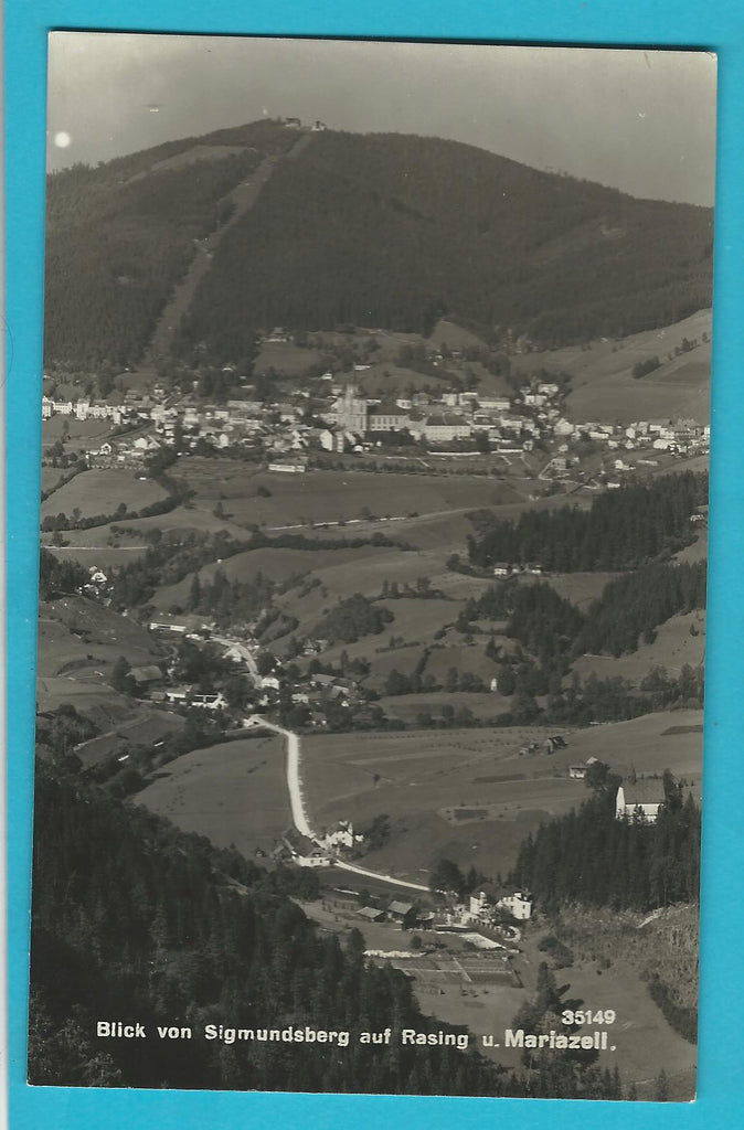 AK Blick von Sigmundsberg auf Rasing u. Mariazell. (1938) Gelaufen. Kleinformat. Verlag: Ledermann. Nummeriert: 35149. Zustand: gut.