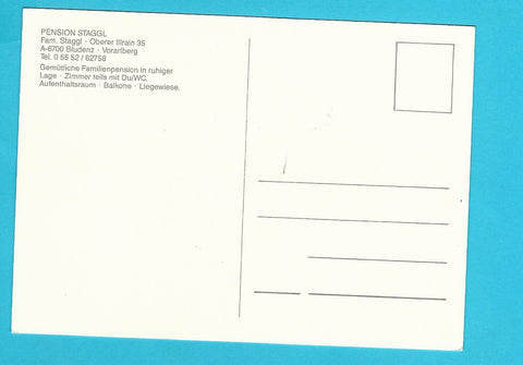 AK Bludenz. Pension Staggl. Fam. Staggl. Oberer Illrain 35. Ungelaufen. Großformat. Zustand: gut.