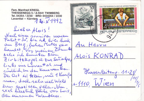 AK Blumendorf Theißenegg. Berghof Götschl. Gelaufen 1992. Großformat. Zustand: gut, linkes oberes Eck angeknickt.