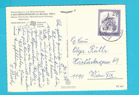 AK Blumengrüße aus Mönichkirchen. Gelaufen. Großformat. Verlag: Alpine Luftbild. Nummeriert: FÖ 647. Zustand: gut.