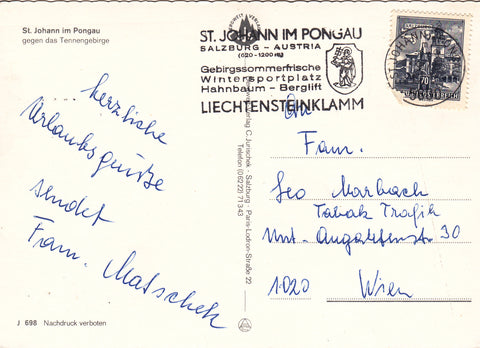 AK Blumengrüße aus St. Johann im Pongau. Gelaufen. Großformat. Verlag: Bergwelt. Nummeriert: J 698. Zustand: gut.