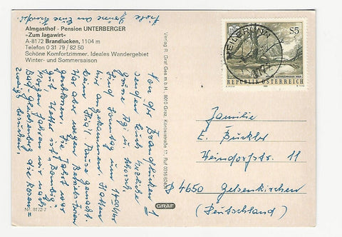 AK Brandlucken. Almgasthof Unterberger. Zum Jagawirt. Gelaufen. Großformat. Verlag: Graf. Nummeriert: 8172-7. Zustand: gut.