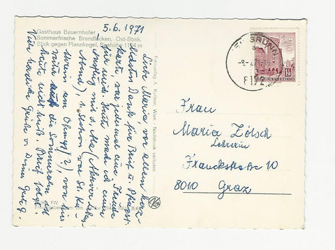 AK Brandlucken. Gasthaus Bauernhofer. Blick gegen Plannkogel. Gelaufen. Großformat. Verlag: Kellner. Nummeriert: 15340 FW. Zustand: gut, leichte Läsuren.