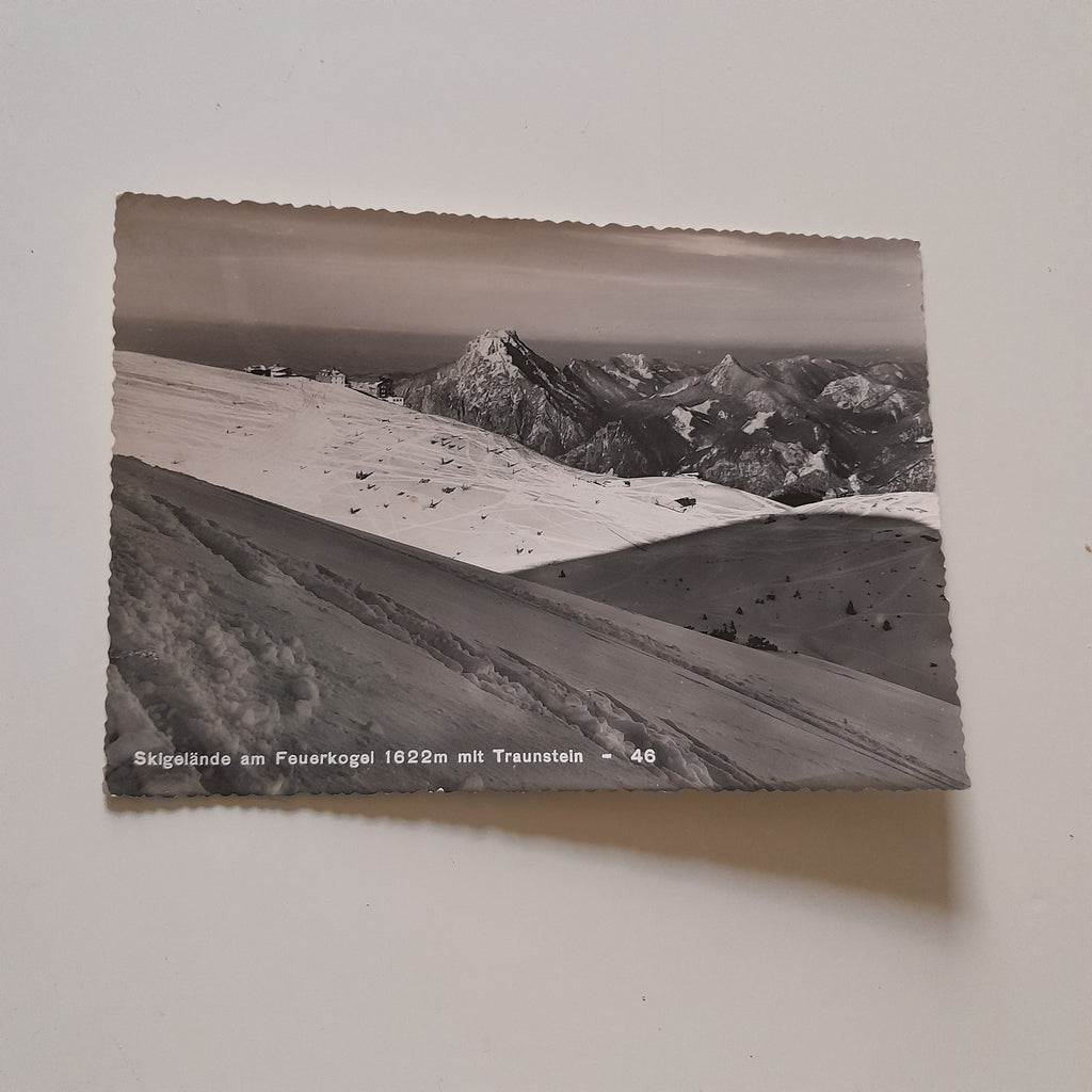 AK Skigelände am Feuerkogel mit Traunstein. Ungelaufen. Großformat. Verlag: Greifeneder. Nummeriert: 46. Zustand: gut.