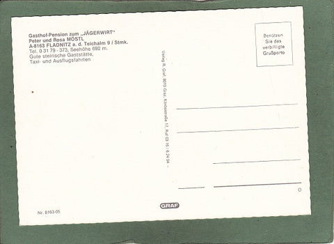 AK Fladnitz a.d Teichalm. Gasthof-Pension zum Jägerwirt. Peter und Rosa Möstl. Ungelaufen, aber beschrieben. Großformat. Verlag: R. Graf. Nummeriert: 8168-05. Zustand: gut.
