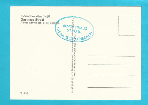 AK Göriacher Alm. Gasthaus Strobl. Seewiesen. (1989) Ungelaufen. Großformat. Verlag: Alpenland. Nummeriert: 935. Zustand: gut.