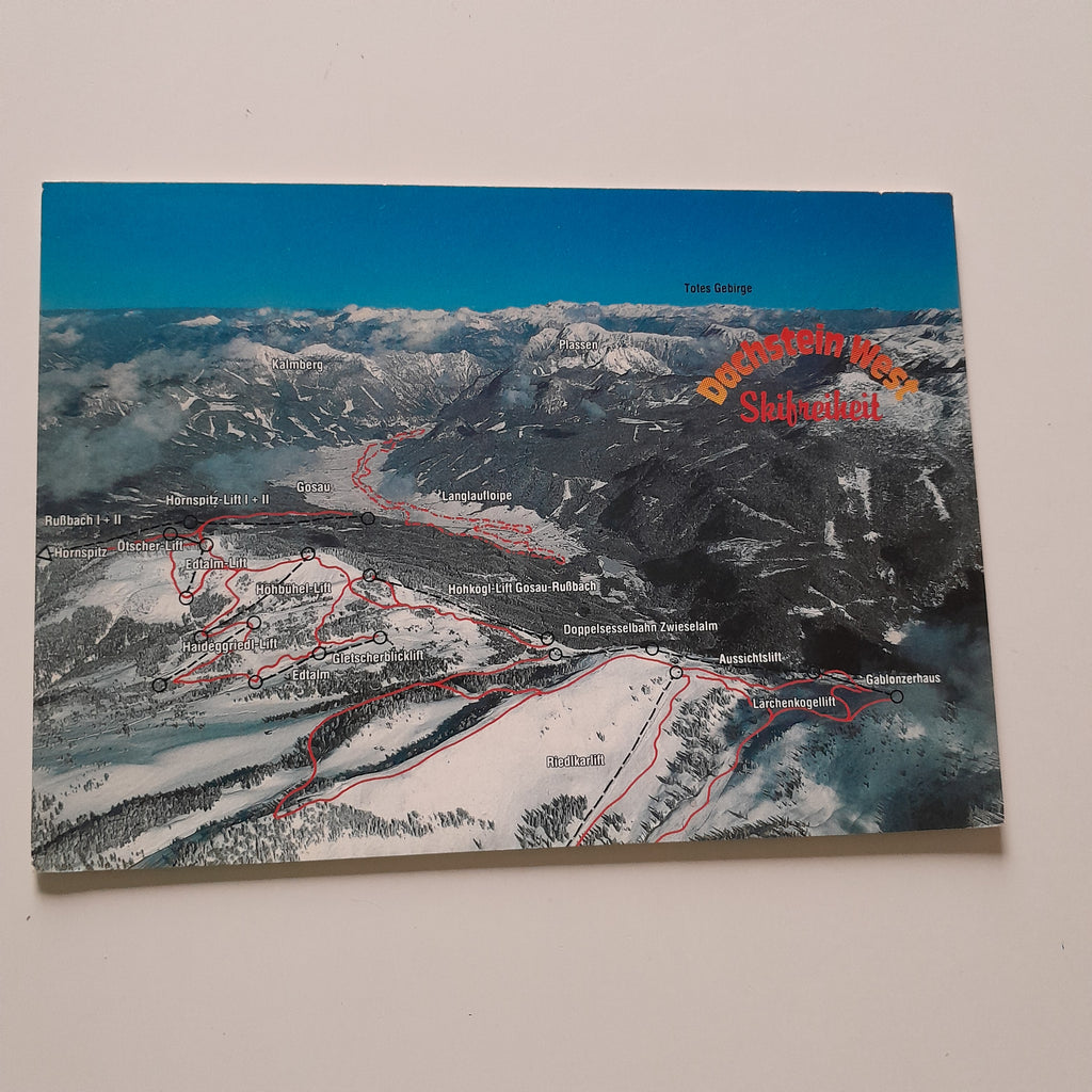 AK Skiregion Dachstein West. Gosau, Zwieselalm, Rußbach, Annaberg. Gelaufen. Großformat. Verlag: Scheurecker. Nummeriert: 2708. Zustand: gut.