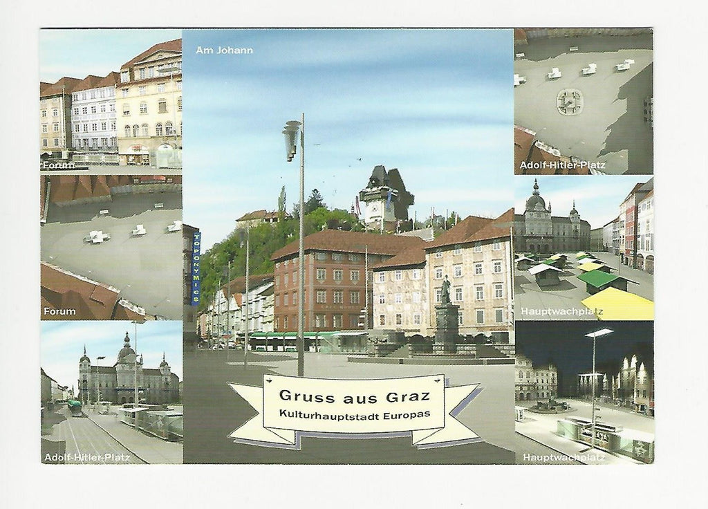 AK Gruß aus Graz. Kulturhauptstadt Europas. Wiederbenennung des Grazer Hauptplatzes. Gelaufen mit Sonderstempel ÖVEBRIA 2003 10. Marke+Münze. (Briefmarke 45 Jahre Kasperl im ORF). Großformat. Verlag: Foto Kommez, Clemens Krauss. Zustand: gut.