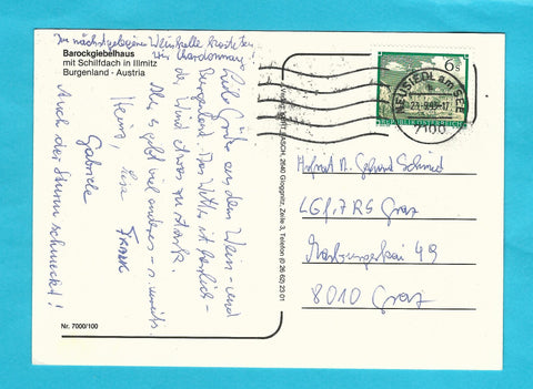 AK Illmitz. Barockgiebelhaus mit Schilfdach. Gelaufen. Großformat. Verlag: Fasch. Nummeriert: 7000/100. Zustand: Knick in linker unterer Hälfte, Knick am rechten Rand in der oberen Hälfte.