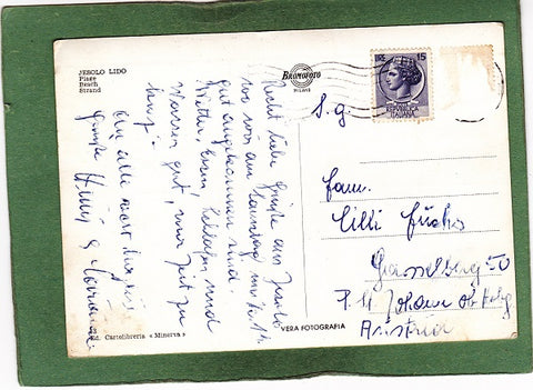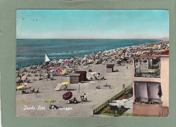 AK Jesolo Lido – La spiaggia. Gelaufen. Großformat. Verlag: Cartolibreria Minerva. Nummeriert: 13. Zustand: Ecken angeknickt bzw. leicht angestoßen, Knicke am linken Rand.