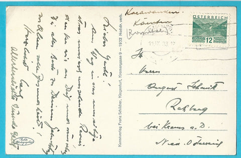 AK Klagenfurter Hütte mit Hochstuhl. (1932) Gelaufen. Kleinformat. Verlag: Schilcher. Nummeriert: 891. Zustand: gut, rechtes oberes Eck geknickt.