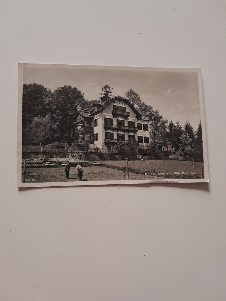 AK Bad. Gleichenberg Villa Rosenhof. (1932-33) Gelaufen. Kleinformat. Verlag: Frank. Nummeriert: 562-42. Zustand: gut, am unteren Rand leicht bestoßen.