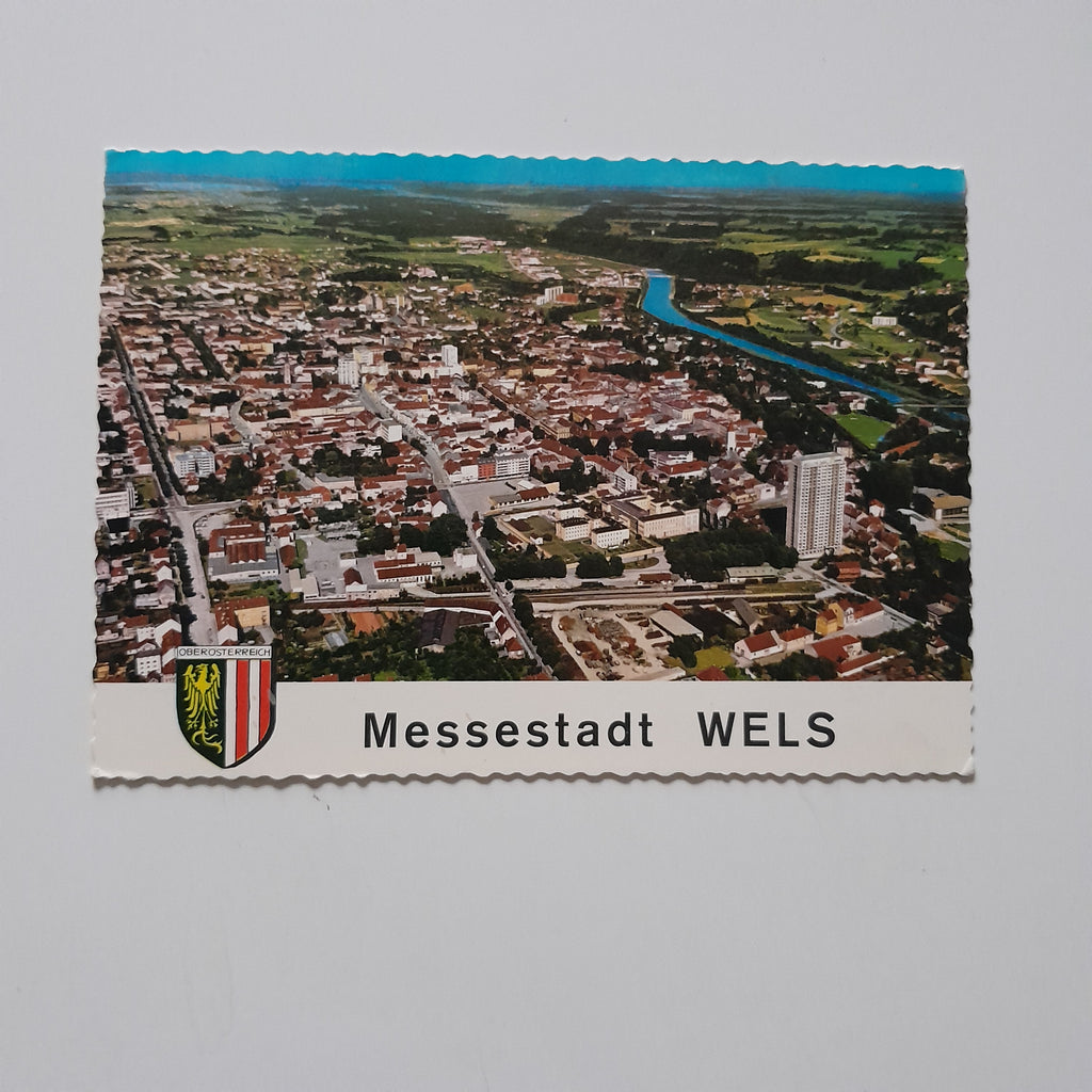 AK Messestadt Wels. Ungelaufen. Großformat. Verlag: Alpine Luftbild. Nummeriert: 55822. Zustand: Knicke.