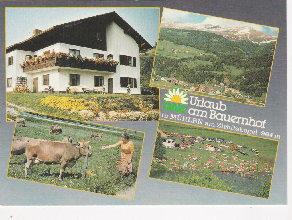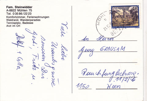 AK Mühlen 75. Fam. Steinwidder. Urlaub am Bauernhof. Gelaufen. Großformat. Zustand: gut.