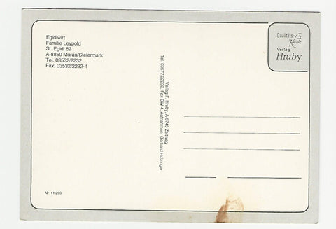 AK Murau. Egidiwirt. Familie Leypold. St. Egidi 82. Ungelaufen. Großformat. Verlag: Hruby. Nummeriert: 11290. Zustand: gut, an Rückseite leicht fleckig.