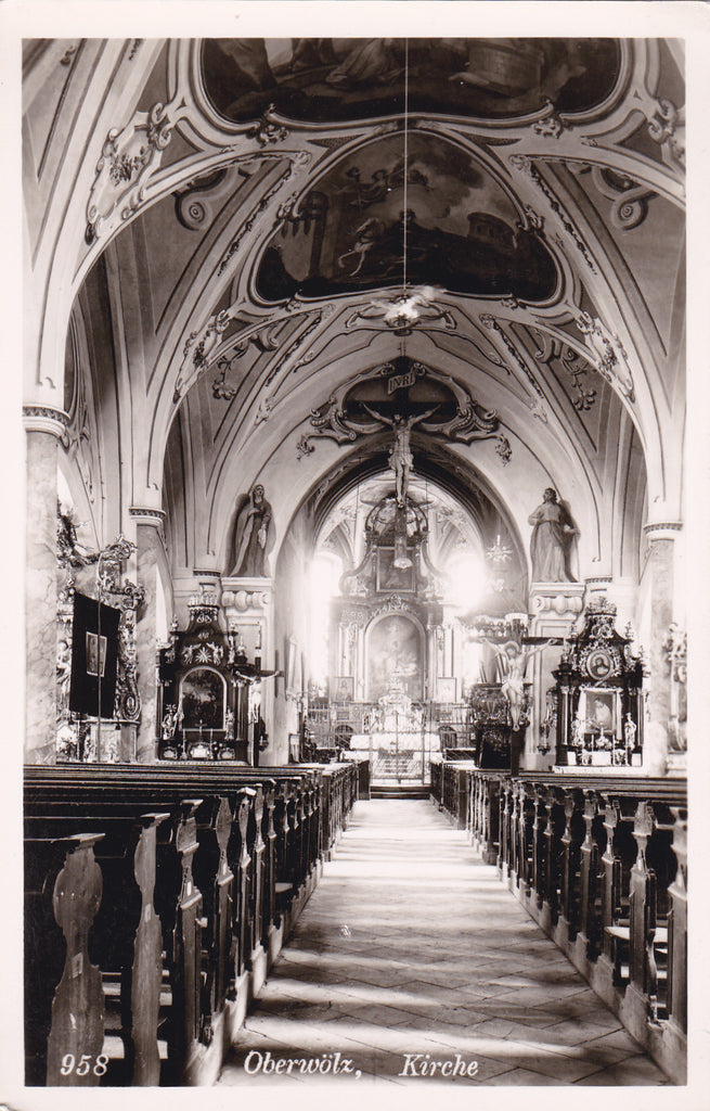 AK Oberwölz. Kirche (1953) Gelaufen. Kleinformat. Verlag: Schneidhofer. Nummeriert: 958. Zustand: gut.