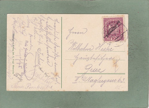AK Oberwölz, Stadttor. Gelaufen 1919. Kleinformat. Verlag: Joh. L. Vogl, Oberwölz. Nummeriert: 20605. Zustand: gut, leichte Randläsuren. („Oberwölz Stadttor“ stand ursprünglich unten am Weg, wurde aber wegretuschiert, allerdings noch zu erkennen, Nummerierung vorne rechts unten)