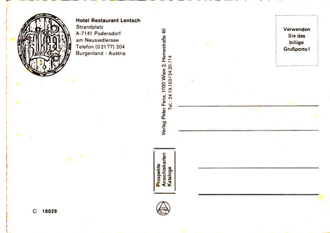 AK Podersdorf am Neusiedlersee. Hotel Restaurant Lentsch. Ungelaufen. Großformat. Verlag: Fenz Nummeriert: C 18029. Zustand: gut.