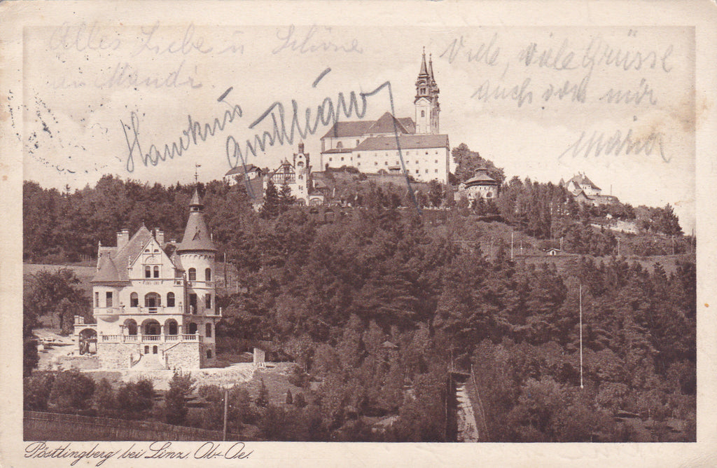 AK Pöstlingberg bei Linz. (1926) Gelaufen 1927. Kleinformat. Verlag: Ledermann. Nummeriert: 12298. Zustand: linkes oberes und rechtes unteres Eck geknickt, vorne mit Bleistift beschrieben.