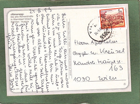 AK Römerweg. Die alte Römerstraße in Warmbad Villach. Gelaufen 1993. Großformat. Verlag: Steinmann. Nummeriert: 574. Zustand: Knick am unteren Rand in der linken Hälfte, sonst O.k.