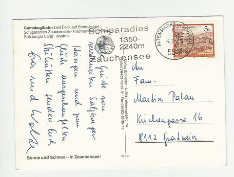 AK Schiparadies Zauchensee. Gelaufen. Großformat. Verlag: Schneider. Nummeriert: W 157. Zustand: gut.
