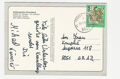 AK Skifaszination Kreischberg. St. Georgen - St. Lorenzen. (1993) Gelaufen. Großformat. Verlag: Hruby. Nummeriert: 10888. Zustand: gut, linkes unteres Eck angeknickt.