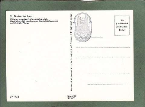 AK St. Florian bei Linz. Höhere Landwirtsch. Bundeslehranstalt. Marktplatz. Schloß Hohenbrunn. Stift St. Florian. Ungelaufen. Großformat. Verlag: Wimmer. Nummeriert: FF 475. Zustand: gut.