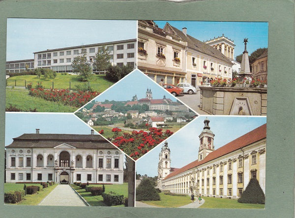 AK St. Florian bei Linz. Höhere Landwirtsch. Bundeslehranstalt. Marktplatz. Schloß Hohenbrunn. Stift St. Florian.