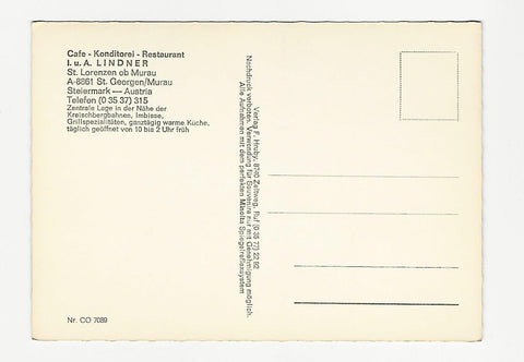 AK St. Lorenzen ob Murau. Cafe Konditorei Restaurant I. u. A. Lindner. Ungelaufen. Großformat. Verlag: Hruby. Nummeriert: 7089. Zustand: gut.