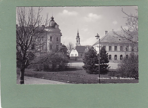 AK Stockerau N.Ö. Bahnhofplatz. Nummeriert: 2011. Zustand: gut, leichte Durchdruckspur etwas unterhalb der Mitte und am oberen Rand leicht angestoßen (siehe Scann).