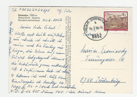 AK Stolzalpe. Sonderkrankenhaus. (1985) Gelaufen. Großformat. Verlag: Hruby. Nummeriert: 8773. Zustand: gut.