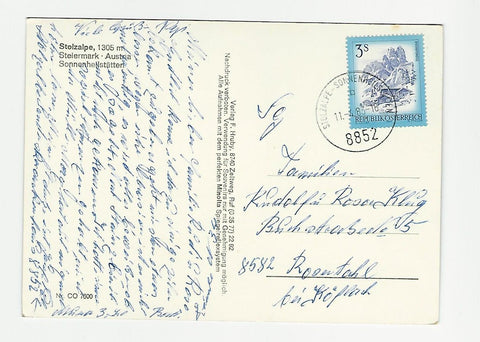 AK Stolzalpe. Sonnenheilstätten. Gelaufen. Großformat. Verlag: Hruby. Nummeriert: 7600. Zustand: gut, linkes oberes und rechtes unteres Eck angeknickt.