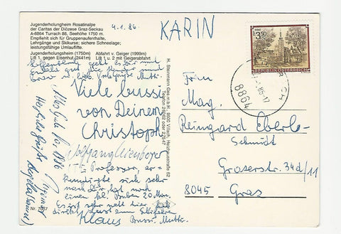 AK Turrach 88. Jugenderholungsheim Rosatinalpe der Caritas der Diözese Graz-Seckau. Gelaufen. Großformat. Verlag: Steinmann. Nummeriert: 7057. Zustand: gut, rechtes oberes Eck geknickt.