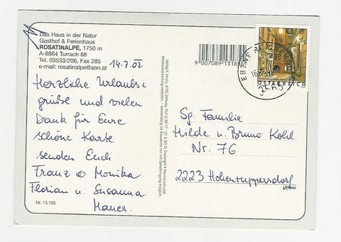 AK Turrach 88. Rosatinalpe. Das Haus in der Natur. Gasthof & Ferienhaus. Ungelaufen. Großformat. Verlag: Hruby. Nummeriert: 13185. Zustand: gut.