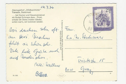 AK Turrach. Alpengasthof Wildbachhütte. Gelaufen. Großformat. Verlag: Steinmann. Nummeriert: 695. Zustand: gut.
