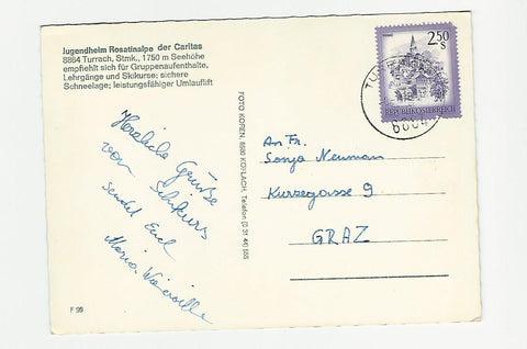 AK Turrach. Jugendheim Rosatinalpe der Caritas. Gelaufen. Großformat. Verlag: Koren. Nummeriert: F 99. Zustand: gut, rechtes unteres Eck angeknickt.