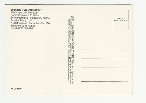 AK Turrach - Turracherhöhe 106. Sportcafe Turracherhof. Fam. Degold. Gelaufen. Großformat. Verlag: Hruby. Nummeriert: 10064. Zustand: gut.