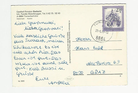 AK Turracherhöhe. Gasthof Pension Badwirt. Inh. Familie Maierbrugger. Gelaufen. Großformat. Verlag: Steinmann. Nummeriert: 5003. Zustand: gut, wenig bestoßen.