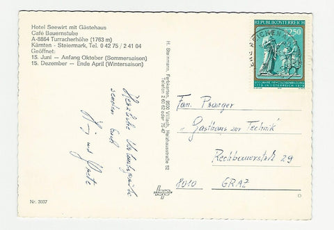 AK Turracherhöhe. Hotel Seewirt mit Gästehaus. Gelaufen. Großformat. Verlag: Steinmann. Nummeriert: 3037. Zustand: gut.