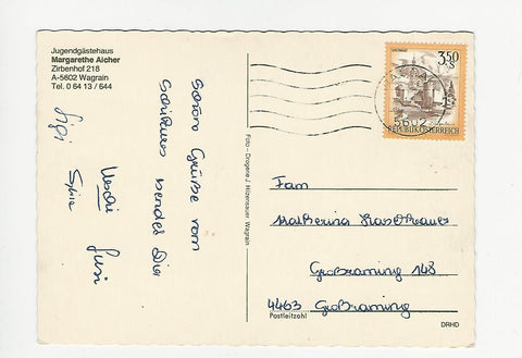 AK Wagrain. Jugendgästehaus Margarethe Aicher. Zirbenhof 218. Gelaufen. Großformat. Verlag: Hilzensauer. Zustand: rechtes oberes Eck angeknickt, sonst leichte Kratzer.