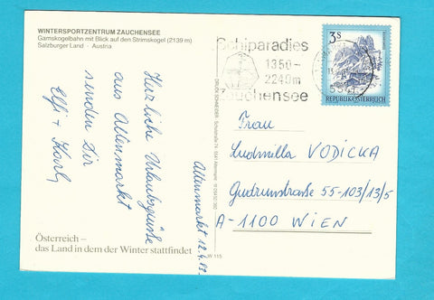 AK Wintersportzentrum Zauchensee. Gelaufen. Großformat. Verlag: Schneider. Nummeriert: W 115. Zustand: gut, rechtes unteres Eck geknickt.