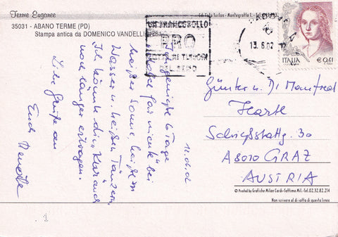 AK Bagni de Abano. Pianta Antica. Stampa antica da Domenico Vandelli. Gelaufen. Großformat. Verlag: Turlon. Zustand: Knicke.