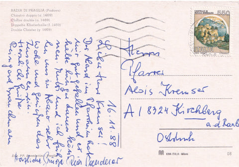 AK Badia di Praglia. Chiostro doppio. Gelaufen. Großformat. Nummeriert: 08. Zustand: linkes oberes Eck geknickt.