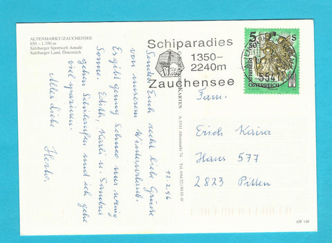 AK Altenmarkt. Zauchensee. Gelaufen. Großformat. Verlag: Schneider. Nummeriert: 140. Zustand: Knick am oberen Rand.