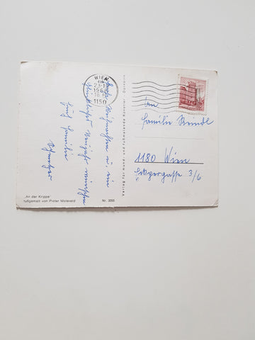 AK An der Krippe. Fußgemalt von Pieter Moleveld. Gelaufen. Großformat. Verlag: Hofstetter. Nummeriert: 3355. Zustand: gut, linkes unteres Eck angeknickt.