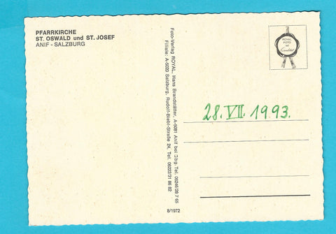 AK Anif Pfarrkirche St. Oswald und St. Josef. Ungelaufen. Großformat. Verlag: Royal. Nummeriert: 8/1972. Zustand: gut.